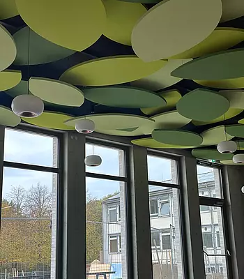 Noch 20 Monate: Ein Hingucker – das akustische Blätterdach der Mensa
