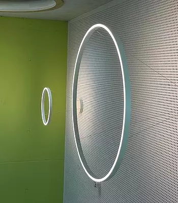 Im Flur sind an einer Stelle überraschenderweise grüne Lampen.