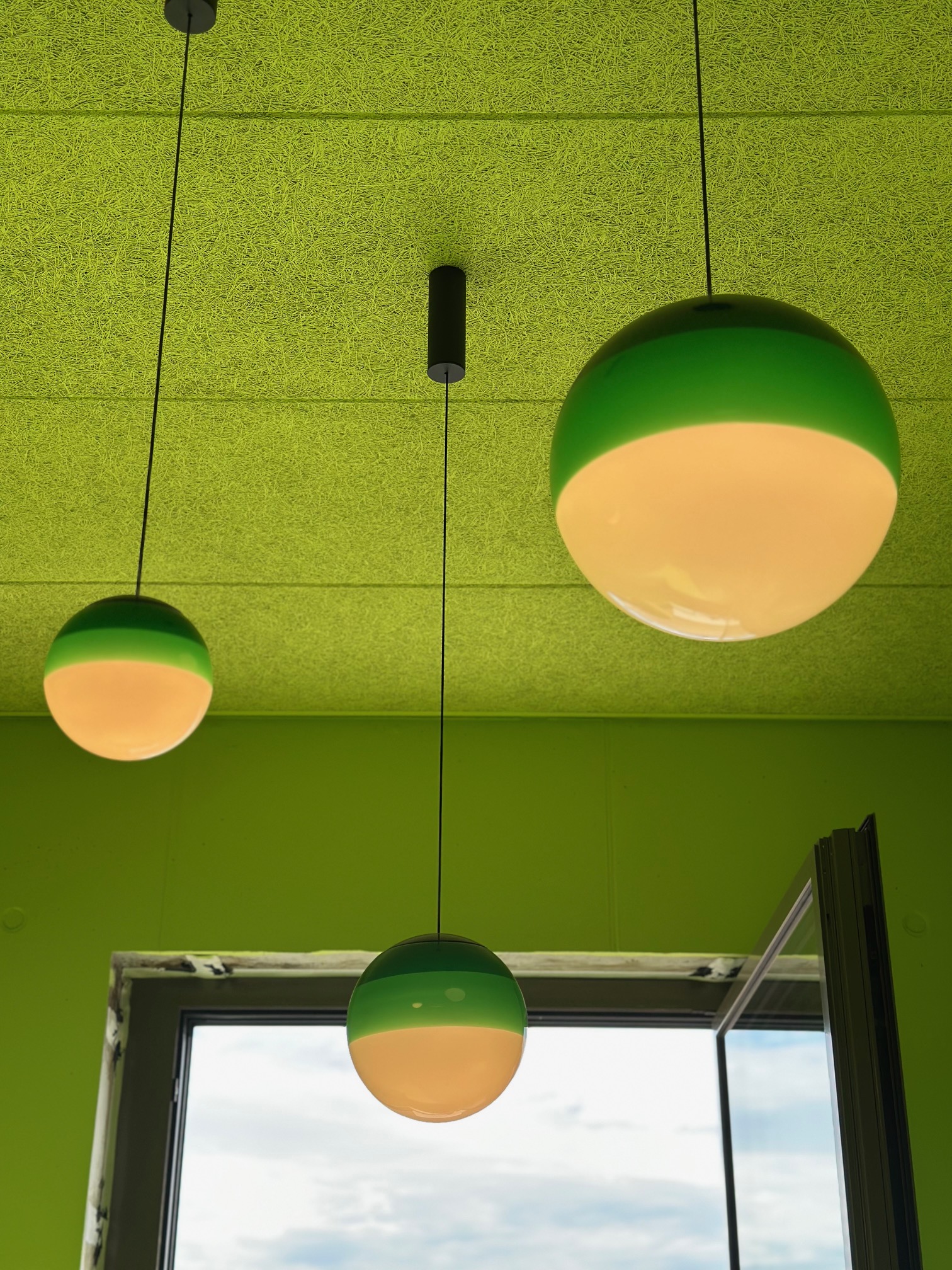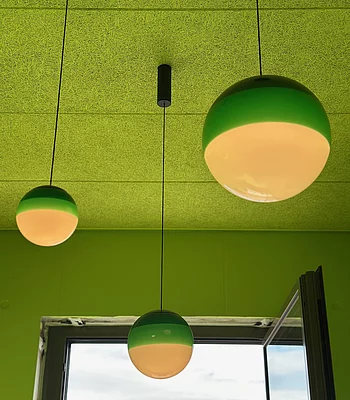 In der Mensa wurden in dieser Woche die Lampen angebracht. Die schalldämmenden, riesigen, grünen Blätter an der Decke fehlen noch, aber wir haben Licht. Schönes Licht. (Nicht in grün übrigens)