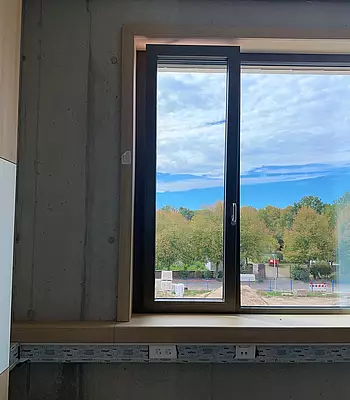 In den Räumen sieht es langsam nahezu fertig aus: Fensterbänke/ Holzverkleidung der Fenster werden nach und nach in jedem Raum eingebaut.