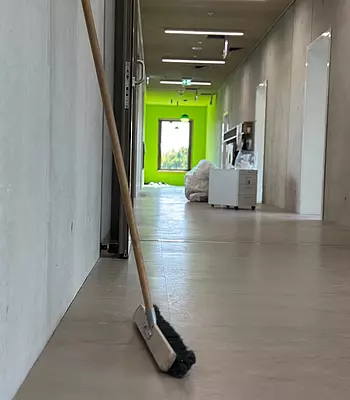 An einigen Stellen im Gebäude liegt nun der grüne Boden. Richtig GRÜN, nicht bisschen grün. GRÜN, wie die Hoffnung. Hoffnung, dass der Umzug gut klappt. Hoffnung, dass die Klingel funktioniert. Hoffnung, dass die gepackten Kartons ihren Weg an den richtigen Platz finden.