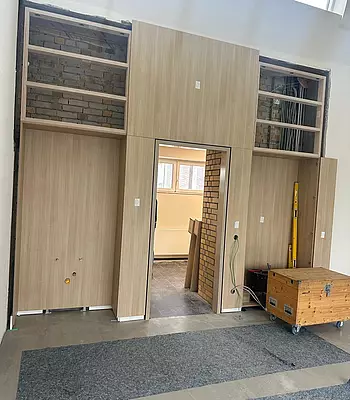 Was uns unvorstellbar schien… der Durchbruch von alt nach neu ist gemacht. Was für die Einen neu und fremd ist (Lehrer) - ist für die anderen (Handwerker) ganz unemotional ein Durchbruch in der Wand.