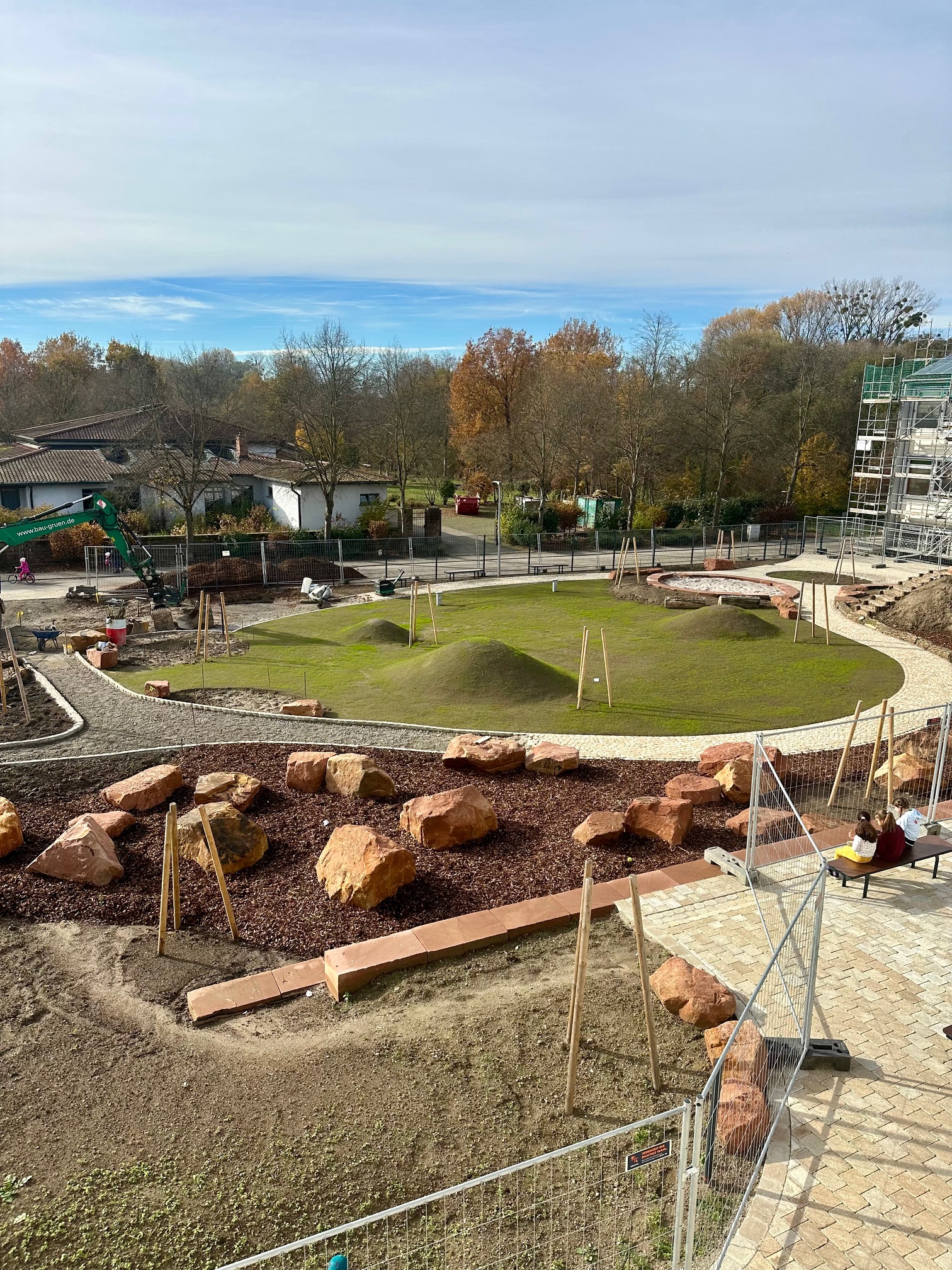 So viel Grün ist auch noch nicht zu sehen – noch wird Erde bewegt, Holz gesägt.