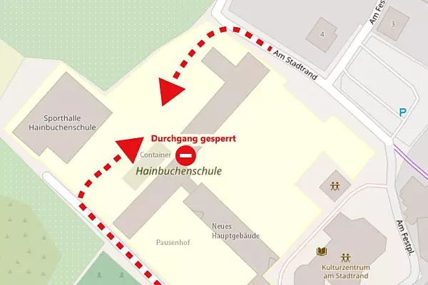 Im Rahmen des 2. Bauabschnitts der Sanierung der Grundschule Hagenbach muss der Durchgang zwischen dem Hauptgebäude der Grundschule und dem ehemaligen Hauptschulgebäude gesperrt werden. Die Sperrung ist erforderlich, da in diesem Bereich umfangreiche Bauarbeiten stattfinden.