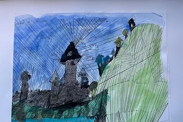 Die vierten Klassen haben kleinteilige und filigrane Bleistiftzeichnungen angefertigt, die im Anschluss in Aquarelltechnik farblich gestaltet wurden.
