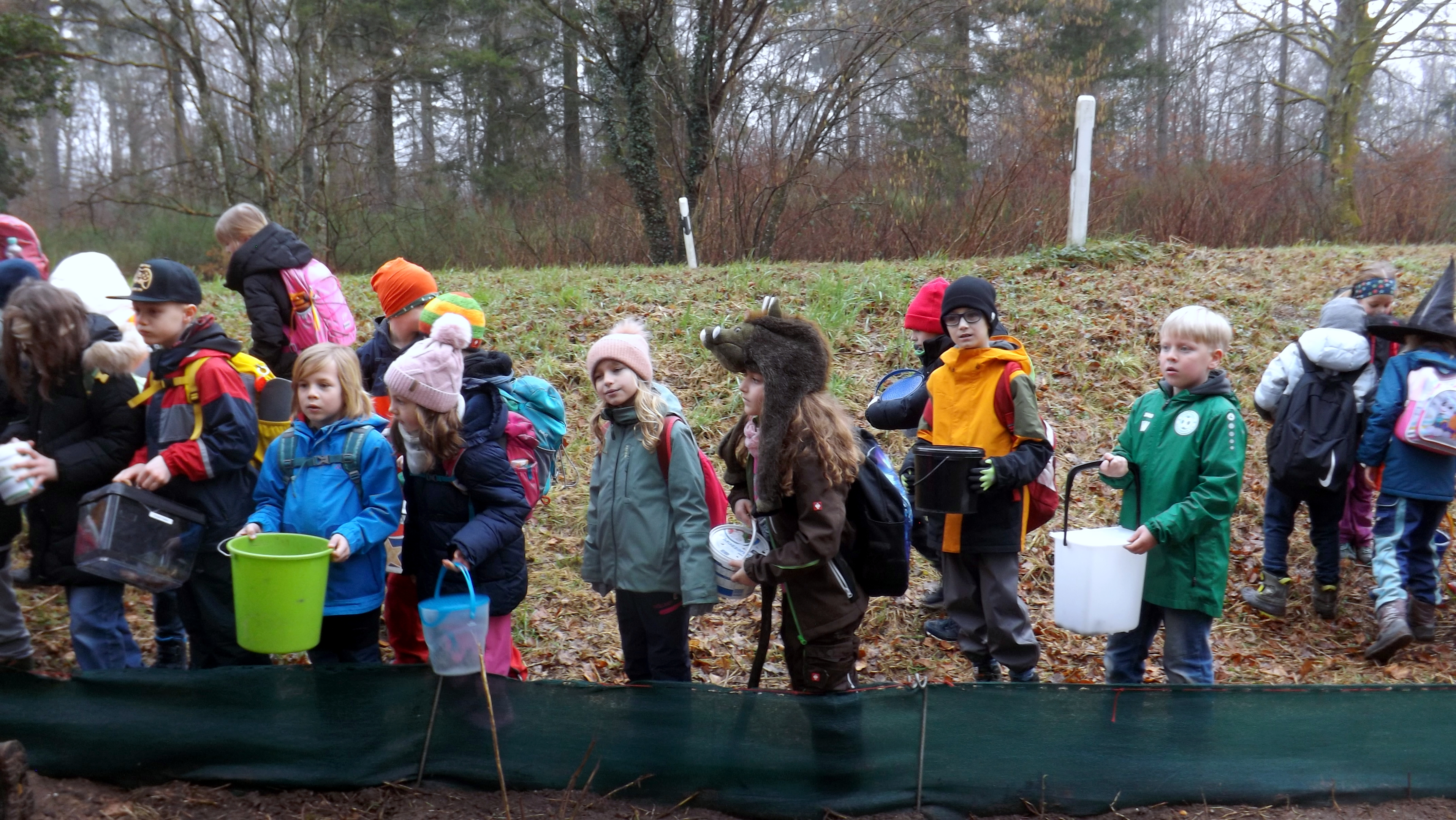 Seit Montag, 24.02.25 sind die Kinder der Hainbuchenschule wieder für den Amphibienschutz unterwegs. Unterstützt durch Herrn Löhle vom Forst werden die Frösche, Lurche und Kröten aus dem Eimer am Schutzzaun umgepackt in kleine Eimer, die die Kinder mitgebracht haben. Im Eimer werden die Frösche dann…