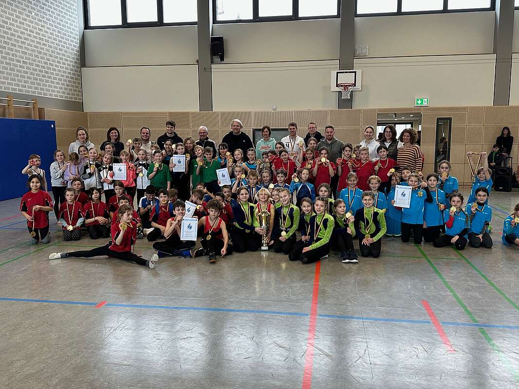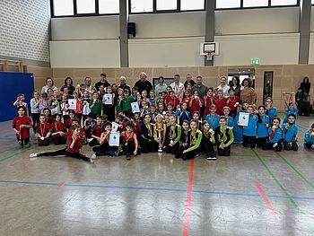 Acht Schulen nahmen am 46. Kreisturnfest in unserer schönen Turnhalle in Hagenbach teil: Bellheim, Jockgrim, Hatzenbühl, Rheinzabern, Leimersheim, Wörth (Damm Schule) , Lingenfeld und Hagenbach. Herr Hoffmann hatte vor Ort die Koordinierung und Planung übernommen und mit den ausgewählten Schülerinnen und Schülern aus Klasse 3 und 4 trainiert. Einzelne Schüler rutschten die letzten Tage noch nach, da wir krankheitsbedingt auf geplante Turner verzichten mussten. SIe haben sich sofort in die Gruppe integriert und tolle Leistungen gezeigt.
