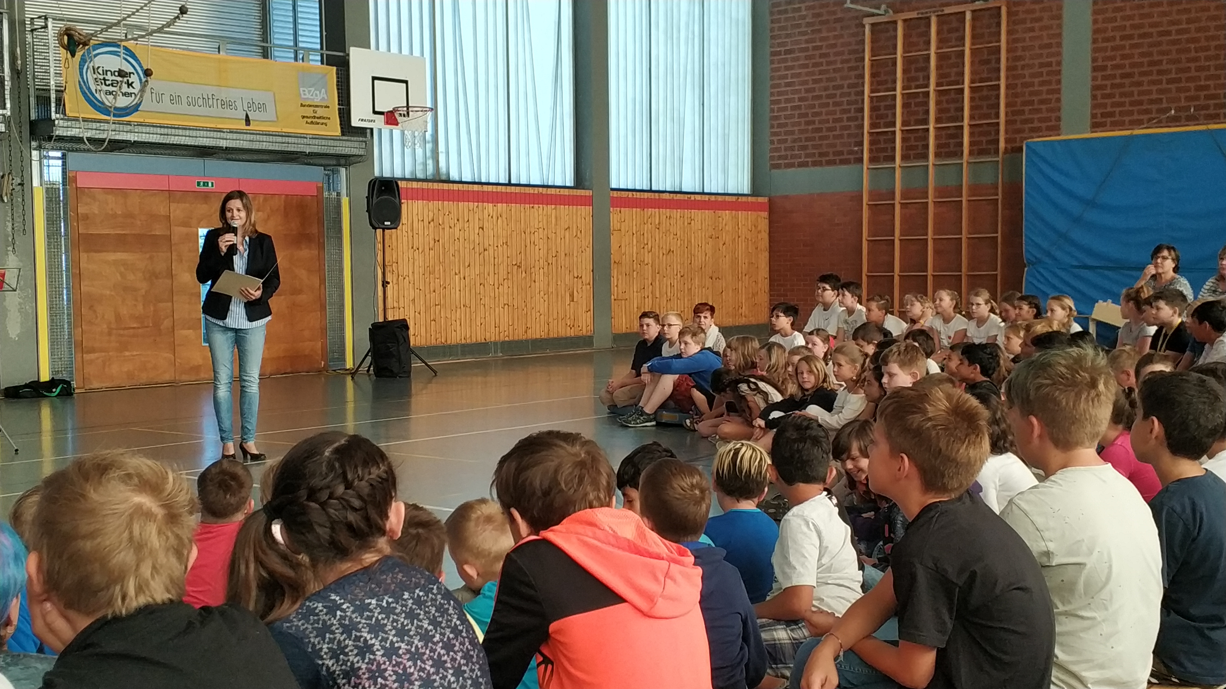 Am letzten Schultag versammelten sich noch einmal alle Klassen und natürlich auch die Eltern der Schulabgänger in der Turnhalle, um sich von den Schülerinnen und Schüler der 4. Klassen zu verabschieden.