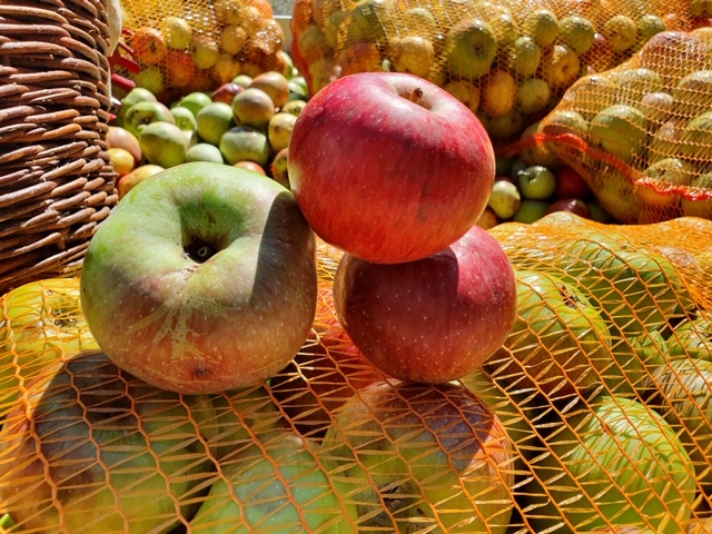 Nun haben wir kastenweise Apfelsaft hier, den wir trinken können. Sie möchten gerne unseren Apfelsaft haben? Sprechen Sie uns an!