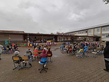 in der letzten Schulwoche vor den Herbstferien haben wir einen Erntedankgottesdienst veranstaltet. Pfarrer Pfautsch, Frau Hilse, Frau Kurz und Frau Rosenberg gestalteten eine wunderschöne Feier. Wir saßen mit Mundschutz klassenweise unter freiem Himmel und die Kinder folgten leise und ganz aufmerksam dem Gottesdienst! Es war eine besondere Veranstaltung. Uns allen fehlte der Austausch untereinander und der Mitmach- Teil, der die Erntedankfeiern normalerweise bereichert- aber dieses Jahr sind Schulfeiern eben nicht wie sonst. Einige Kinder lasen Fürbitten und andere brachten Gaben. Vielen Dank allen Eltern, die es ermöglichten, die Wörther Tafel zu unterstützen und den Tisch von Familien zu decken, die wenig haben.