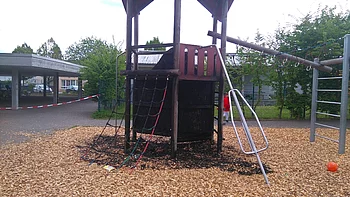 Das einzige Spielgerüst ist nicht mehr nutzbar und muss entfernt werden und somit kann auch darauf nicht mehr gespielt werden. Ich kann nicht mit Worten ausdrücken, wie traurig die Kinder sind und wie wütend die Schulgemeinschaft darüber ist, wie mit Schuleigentum umgegangen wird.