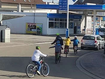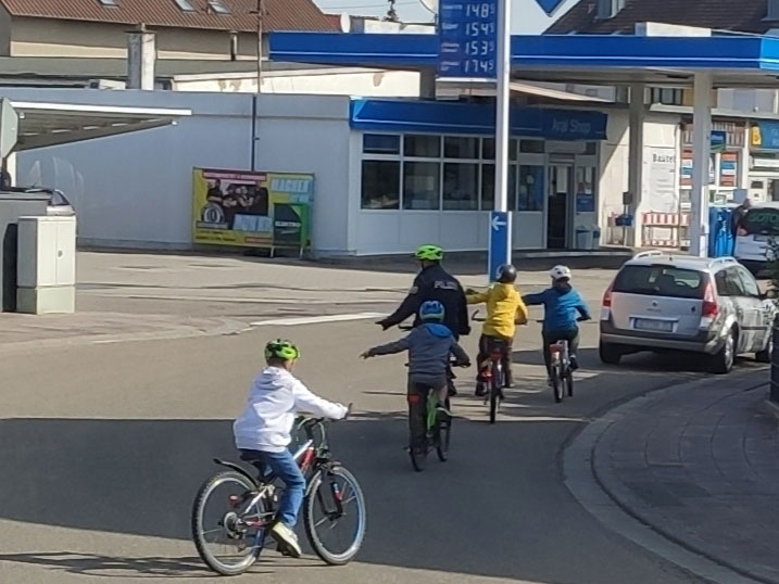 Zurzeit fahren unsere Viertklässler mit ihren Fahrrädern in Kolonne durch Hagenbach: Die diesjährigen Fahrradprüfungen werden durchgeführt.