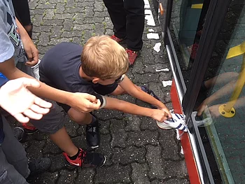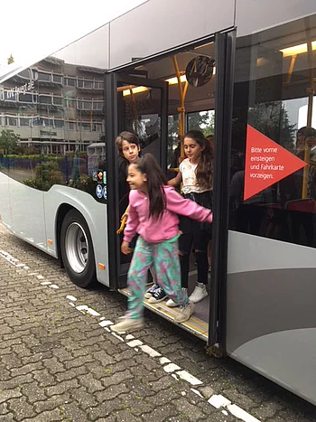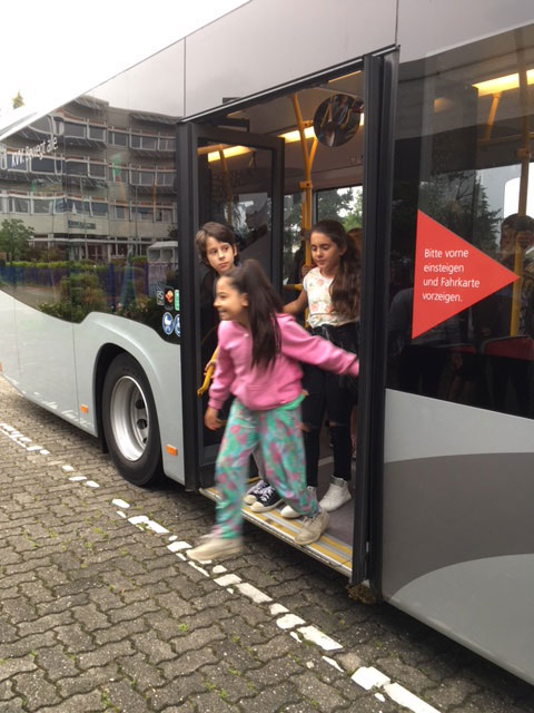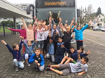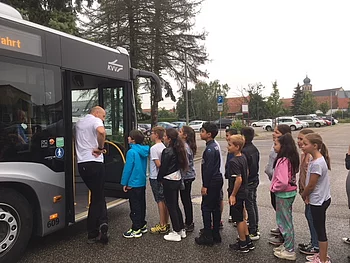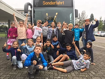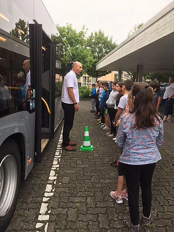 Die Klasse 4b hat an der Schulaktion der Daimler AG "MobileKids" teilgenommen und den ersten Preis gewonnen. Als Preis erhielten die Kinder ein Verkehrssicherheitstraining mit dem Schulbus. Eine gelungene Sache!