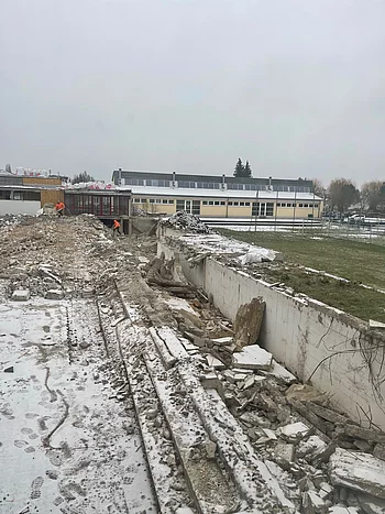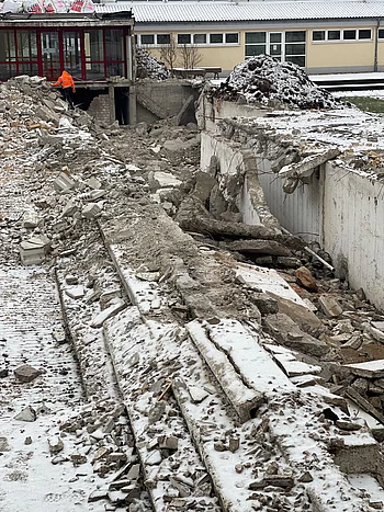 Der ANFANG ist gemacht, bald sehen wir auch von der alten Mehrzweckhalle nichts mehr...