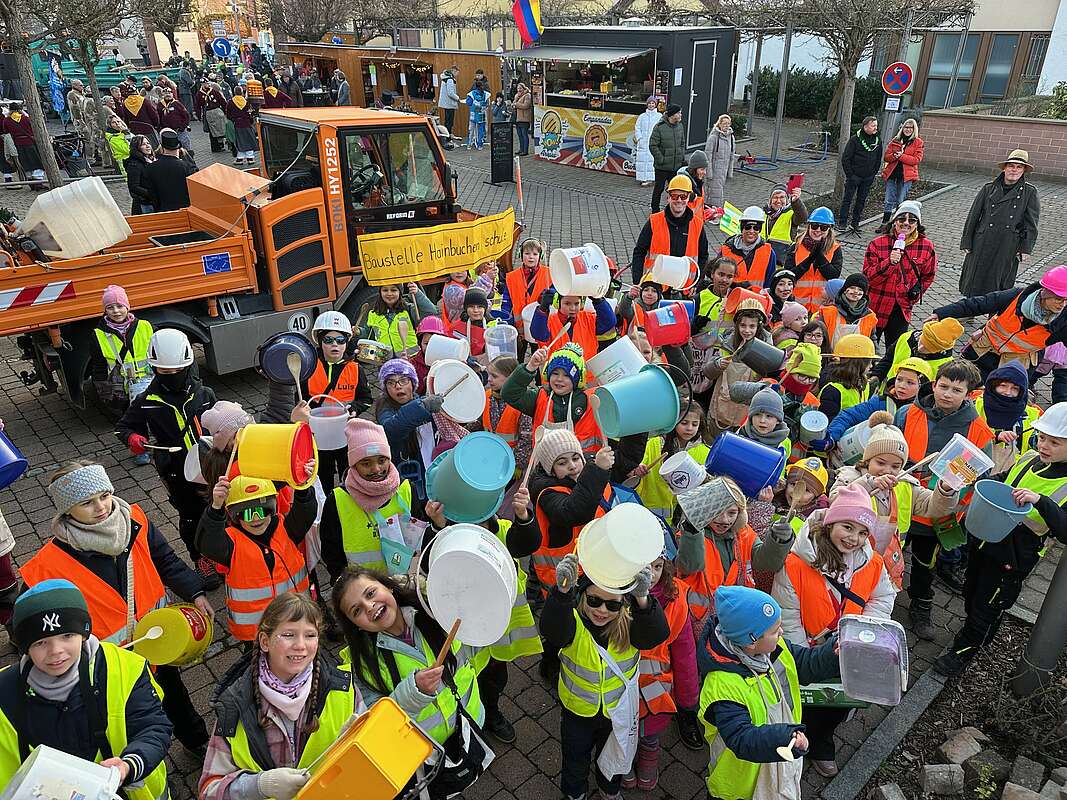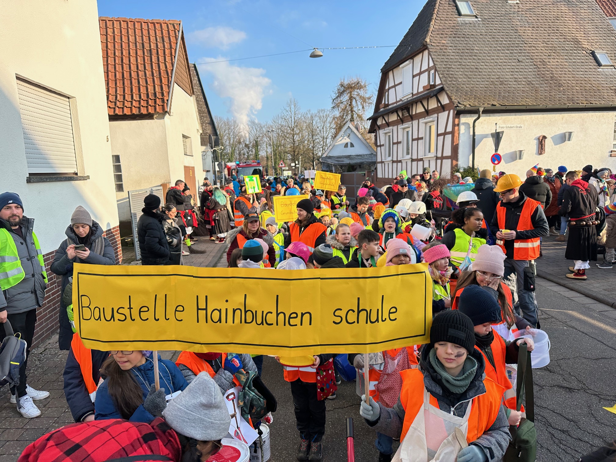 Viele Schüler der Hainbuchenschule nahmen am 18. Januar am Umzug der Hagenbacher Wölfe teil. Es wurde getrommelt und gesungen und aus aktuellem Anlass war auch ein Motto schnell gefunden:
