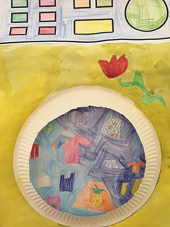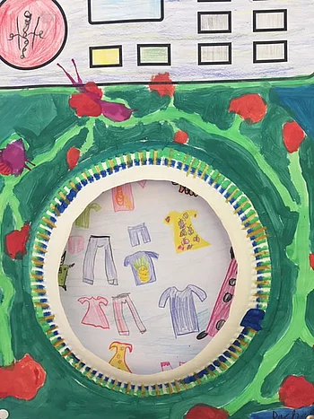 Die Klasse 2c hat vor dem Klassenraum einmal ausgehängt, was sich so alles in der Waschmaschine befinden würde, wenn sie das Zepter zuhause übernehmen dürften.