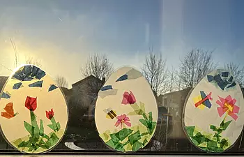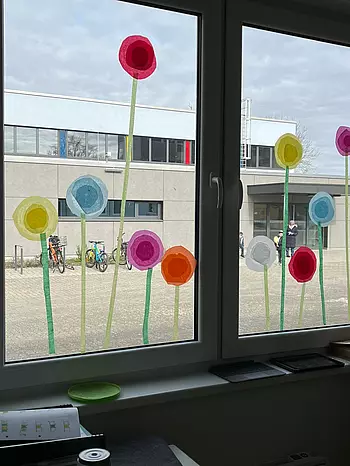 Die Kinder aus Klasse 1 und 3 haben wunderschönen Fensterschmuck gebastelt.