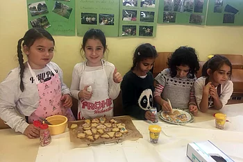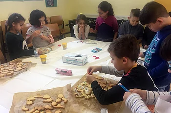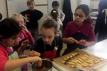 Es wird geknetet, ausgerollt, ausgestochen und natürlich genascht. Die 2a ist im Weihnachtsbackfieber und zaubert einen herrlichen Duft in das Schulgebäude.