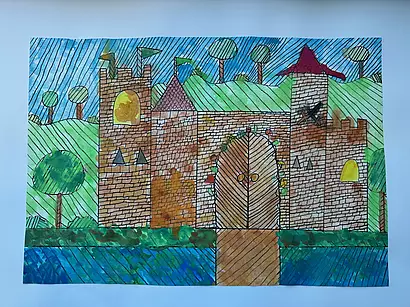 Die vierten Klassen haben kleinteilige und filigrane Bleistiftzeichnungen angefertigt, die im Anschluss in Aquarelltechnik farblich gestaltet wurden.