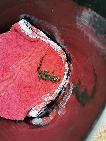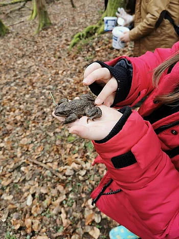 Bereits seit Anfang März helfen die Kinder aller Klassen den heimischen Amphibien beim Überqueren der hochfrequentierten Landstraße.