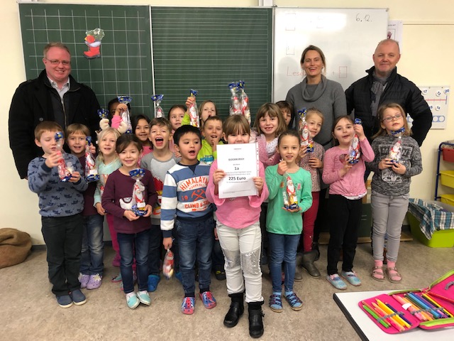 Wir hatten hohen Besuch in der Schule: Zwei Mitglieder des Vorstands des Fördervereins besuchten die Kinder der ersten Klassen um die Ergebnisse der Rallye mitzuteilen und um allen Kindern der Schule einen Nikolaus zu überreichen.