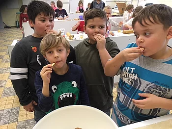 Danke an die Eltern, die mit Teig und helfenden Händen unterstützen. Die Bilder sind von Klasse 2b.