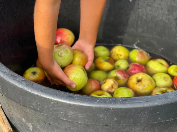 Am Mittwoch, 28.09.22 wurde an der Schule Apfelsaft gekeltert. Die vierten Klassen zeigten sich für die Vorbereitung zuständig, wuschen, schnitten, zerkleinerten und pressten die Äpfel- die anderen Klassen waren hervorragende Verkoster und tranken den (trüben) Saft.