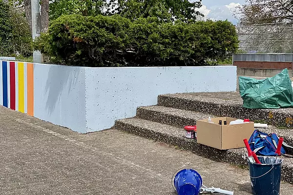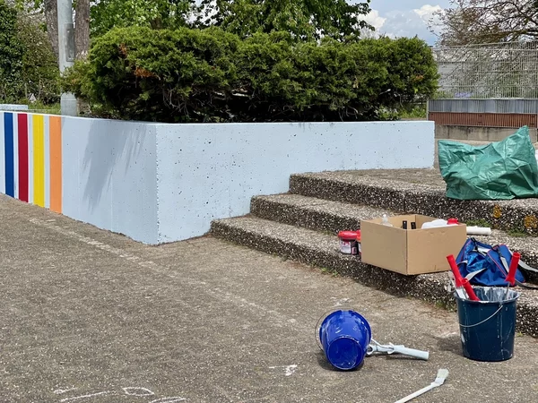 Das Projekt "Schulhofgestaltung" von Frau Rosenberg arbeitete drei Tage intensiv mit Grundierung und Farbe, um unseren zweiten Schulhof, der im neuen Schuljahr Hauptschulhof wird, schön zu gestalten. Die Kinder gaben sich viel Mühe, es wurde kaum gekleckst.