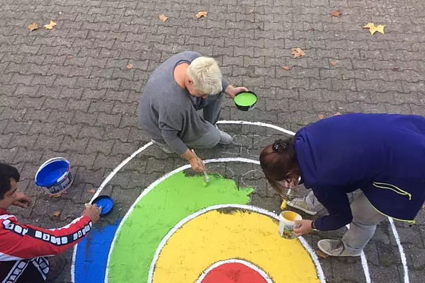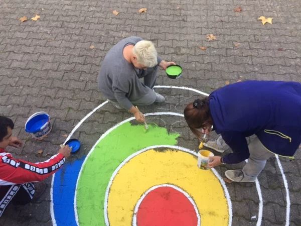 Am Donnerstag, 21.09.2017 wurde auf dem Schulhof gemalt. Seit Wochen wurde der Termin wegen unbeständigen Wetters immer wieder verschoben.
