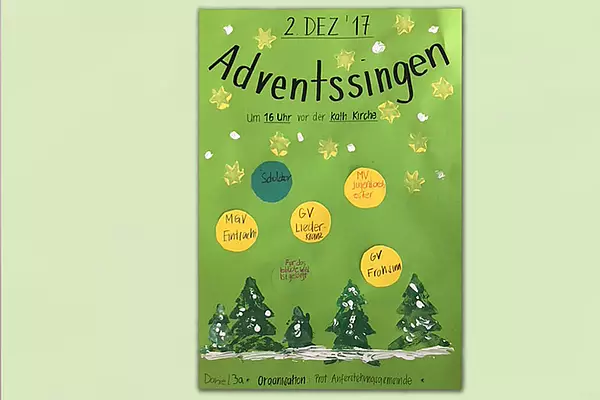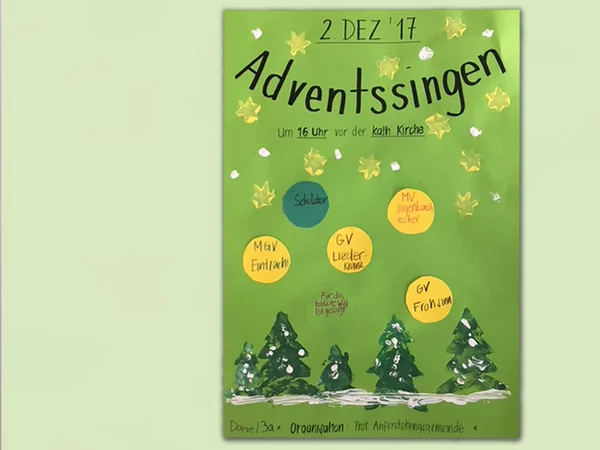 Die Klasse 3 a hat im Kunstunterricht mit Frau Geissler die Plakate für das diesjährige Adventssingen gestaltet. Es wurde gedruckt und jedes einzelne Bild wurde ein Unikat. Es sind sehr sehenswerte Stücke entstanden.