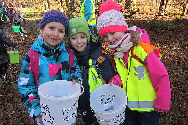 Jedes Jahr warten die Schüler der Hainbuchenschule gespannt auf den Startschuss zur alljährlichen Amphibienaktion.