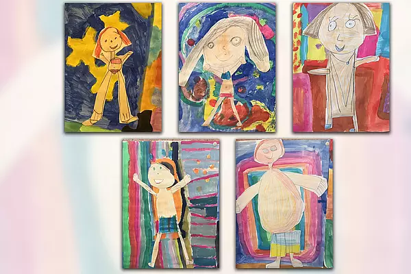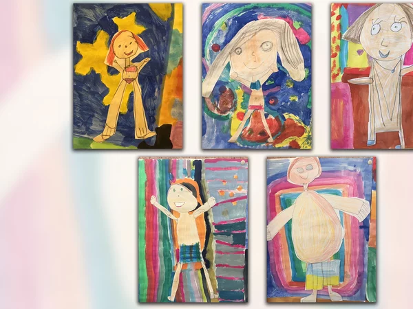 Die Klasse 2a hat kleine Selbstbildnisse gestaltet von sich in diesem Sommer.