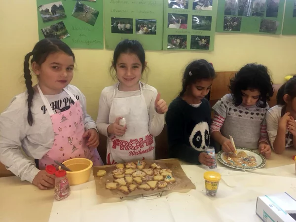 Es wird geknetet, ausgerollt, ausgestochen und natürlich genascht. Die 2a ist im Weihnachtsbackfieber und zaubert einen herrlichen Duft in das Schulgebäude.
