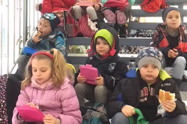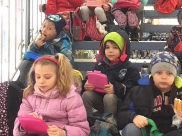 Zweite Klassen und ihre nassen Handschuhe