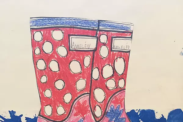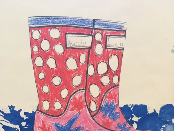 Die Klasse 1b hat Gummistiefel in den Pfützen bemalt. Passend zu unserem Dezemberwetter.
